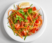 Göbek Salata, Rende Havuç, Kırmızı Lahana, Domates, Salatalık, İnce Kıyım Kıvırcık